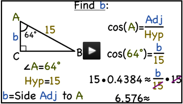 The multimedia piece titled “How do you Find a Missing Side using Cosine” shows you how to use cosine to find a missing side.