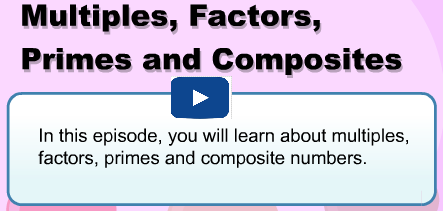 For a more thorough review, watch the interactive piece titled “Multiples, Factors, Primes and Composites” that reviews multiples, factors, and prime numbers. Examine Topics 4, 7, and 10.