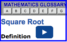 If you are not completely sure about square roots, have a look at the “Square Roots” applet. It provides a definition and example of square roots, as well as a method of how to estimate a square root.