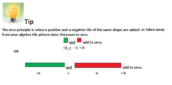 For this lesson, you may wish to use the set of algebra tiles that you borrowed from your teacher or that you created from the Algebra Tiles Template.