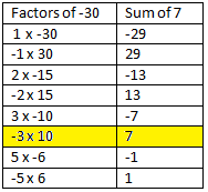 Use a table to consider the possibilities. ** Think - since the product is positive and the sum is negative, BOTH numbers need to be negative.
