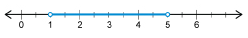 Similarly, to report the range as “the set of all numbers between 1 and 5, not including 1 and 5,” you could use the following number line.