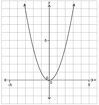 The following is the graph of a relation with equation y = x2. Express the domain and range of the graph.