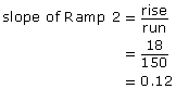The slope of Ramp 1 is 0.13. The slope of Ramp 2 is 0.12.