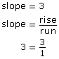 To determine the rise and run of a slope of 3, write the slope as a fraction.