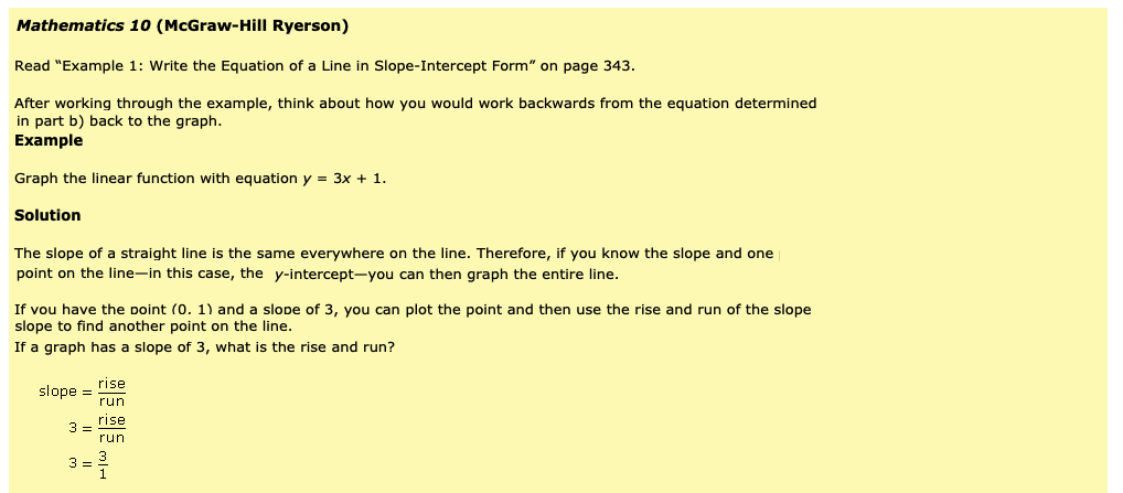 Read the sections in your textbooks that relate the graph of a linear function to its equation.