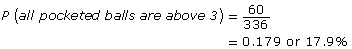 - Determine the probability that all the pocketed balls have a value greater than the number 3 ball.