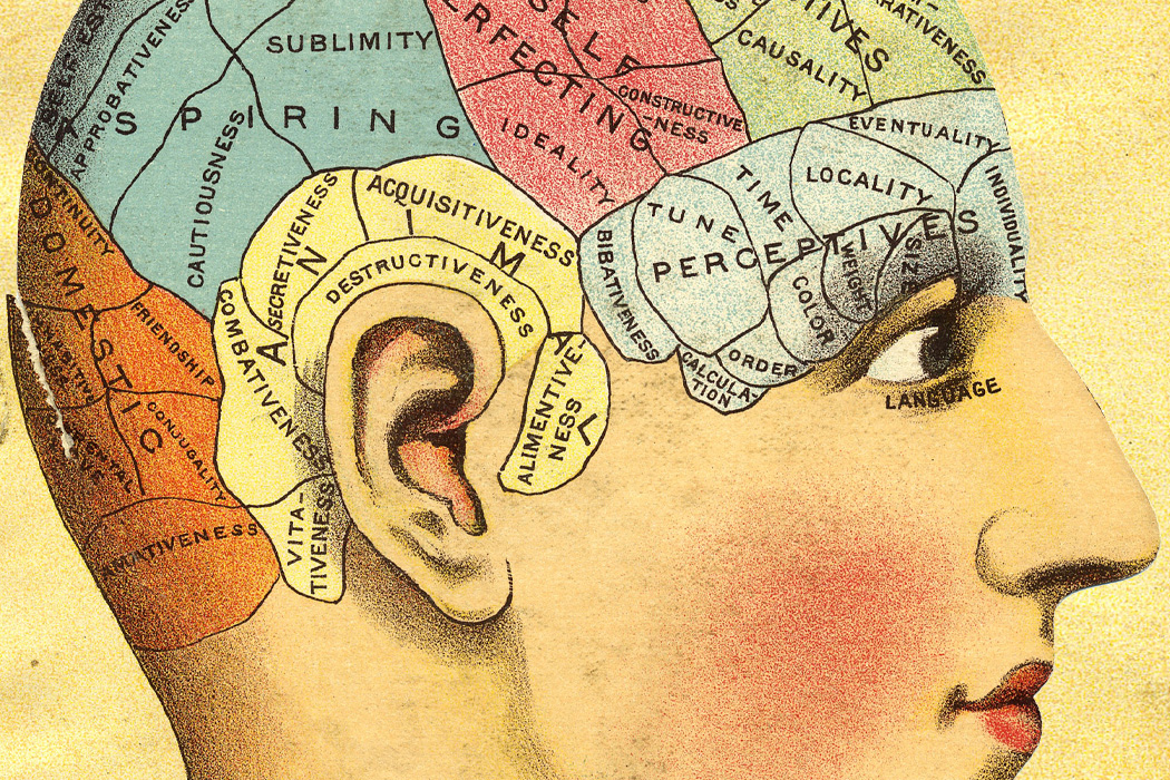 Phrenological assumptions about brain function and personality. Note how this model attempts to explain how functions of the individual's brain are localized.