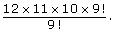 Dividing the numerator and denominator by the common factor of 9! leaves 12 x 11 x 10, or 1320.