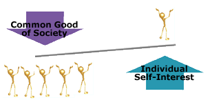 a balance between individual rights and freedoms and the common good. If individual freedoms interfere with the common good, should government interfere by limiting those freedoms? If the order of society is threatened, should government be able to