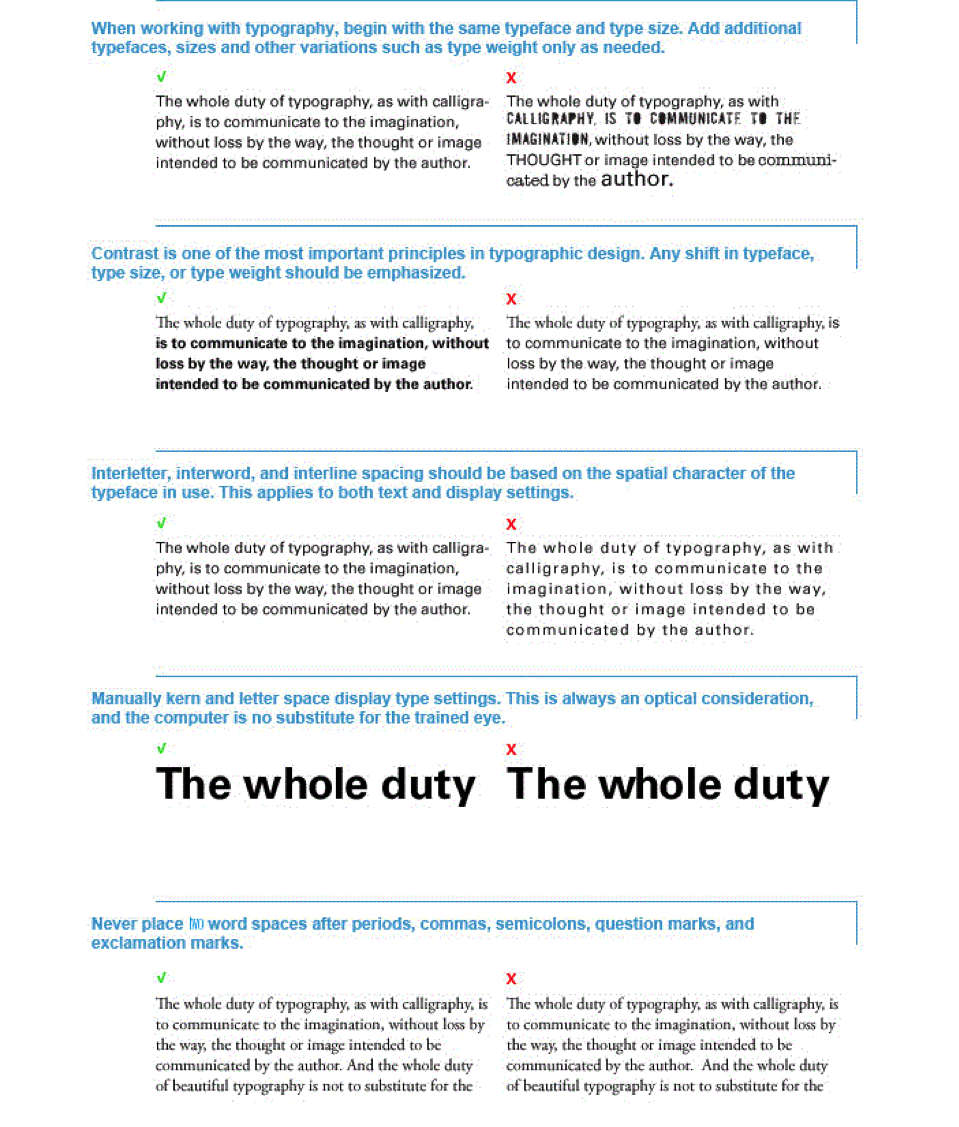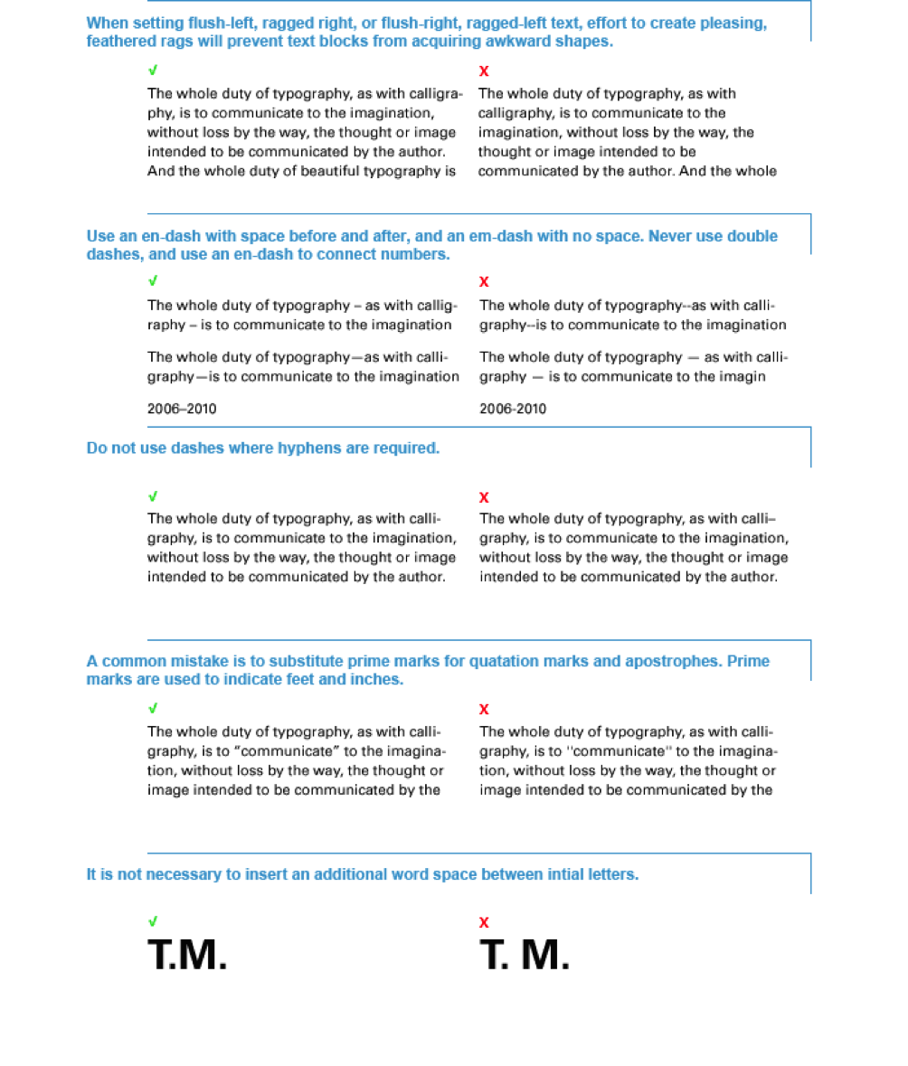 Here are some basics to follow when doing text layout to maximize readability and help you from making typographic errors.