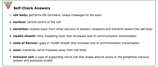 To help you understand neurons, read pages 368 and 369 of your textbook. Then read pages 370 to 372. You may wish to make summary notes and place your notes in you course folder for future study. It is important to include a labelled diagram of the neuron similar to the one on page 369 of your textbook.