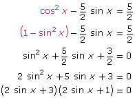 This equation now contains only sines and can be solved using a factoring strategy you learned in Module 4. A complete solution to this problem is shown.
