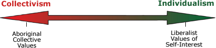 upon group or collective values. The liberalist value of self-interest goes against collective Aboriginal values.