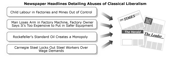 Newspaper Headlines Detailing the Abuses of Classical Liberalism