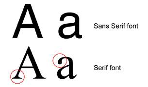Text should be large enough to read at a distance — if your readers can’t read the text quickly as they walk by, your poster won’t get a second look. Sans serif fonts, such as Arial and Helvetica, are easier to read than serif fonts, such as Times New Roman, because the letters of the fonts don’t have the “serifs” — hooks or end strokes — that characterize serif fonts. (If you have taken any French courses, remember that sans means without, so sans serif means without the hooks or end strokes.) Use only one or two font styles for a more consistent look, and adjust the spacing between the text to make it easier to read.