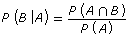 - dependent events: P(A ∩ B) = P(A) × P(B|A) or