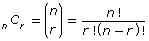 where n is the size of the group from which the objects are taken and r is the number of objects that are taken at a time. The formula