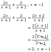 A substitution of −1 into the original expression would not result in a solution of 2. Therefore, −1 is a non-permissible value and a restriction is placed on the solution.