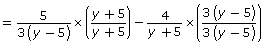 Multiply each expression by a fraction that is equal to 1 so each ends up with the denominator 3(y − 5)(y + 5). |
