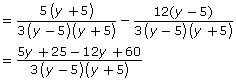 The LCD equals 3(y − 5)(y + 5). |