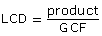 You discovered that the order of steps for these procedures is important. You learned two strategies for determining the lowest common denominator. One method is based on a strategy similar to prime factorization. The other method is based on the pattern that the lowest common denominator is equal to the product of the denominators divided by the greatest common factor: