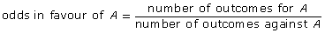 odds in favour of A = number of outcomes for A : number of outcomes against A