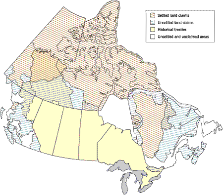 A comprehensive claim is essentially a modern-day treaty. These come about when a group of aboriginal peoples has been deprived of its traditional territory without ever having signed a treaty. For example, until recently, most First Nations in BC had never signed treaties, and the province did not recognize First Nations title to land. Now the federal and provincial governments are negotiating land claims together with these nations.
