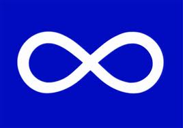 The infinity sign (∞) symbolizes two cultures together and the continuity of the Métis culture.