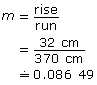 To change the slope to a percent, multiply by 100. The slope is about 8.7%. Since this slope exceeds the maximum allowance of 8.3%, the wheelchair ramp is not legal.