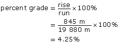 Coquihalla Pass has a percent grade of 4.25%.