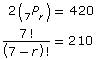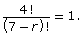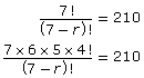The 4! in the numerator and the expression (7 − r)! must divide to 1, so r must equal 3.
